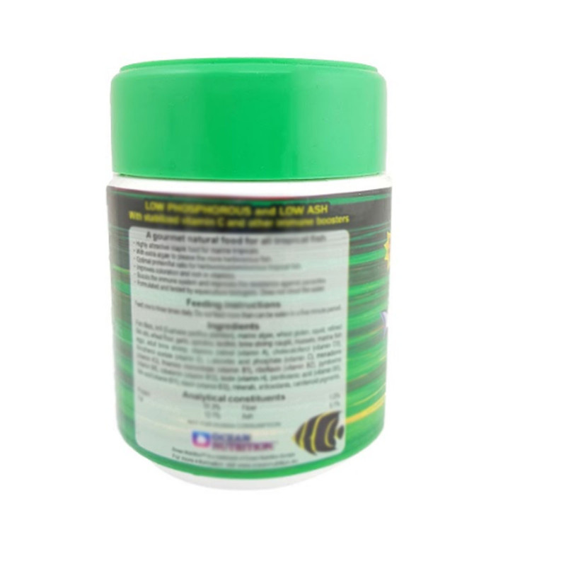 غذای آبزیان اوشن نوتریشن مدل Formula Two Flakes محصولی باکیفیت ساخت تایلند است که مخصوص ماهیان زینتی گیاهخوار طراحی شده. این غذا با ترکیب جلبکهای دریایی، ویتامینها و مواد مغذی ضروری، موجب رشد سالم، بهبود رنگ و افزایش نشاط ماهیها میشود. ساختار ورقهای آن بهراحتی در آب پخش شده و برای استفاده روزانه ایدهآل است.
