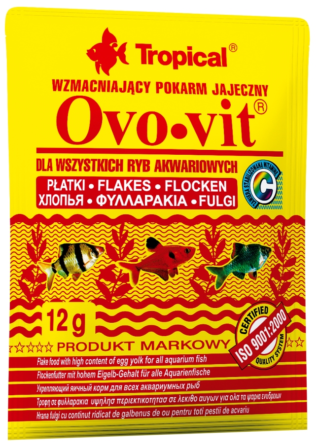 غذای پولکی Tropical Ovo-vit یک غذای غنی و تقویتکننده برای ماهیهای آکواریومی زینتی است که به واسطه افزودن زرده تخممرغ، منبعی ارزشمند از پروتئینهای قابلجذب، اسیدهای چرب ضروری و لسیتین طبیعی فراهم میکند. این ترکیب غذایی نیازهای تغذیهای ماهیان را در دوران رشد، بلوغ و آمادگی برای تخمریزی بهطور کامل پشتیبانی میکند.