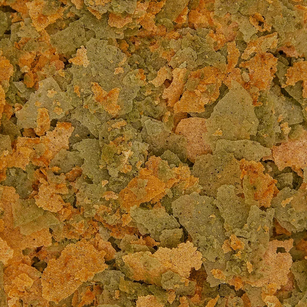 این پولکی سبک بوده و بهآرامی در آب حرکت میکند تا ماهیها بتوانند بهراحتی در آب میانه یا سطح، آن را مصرف کنند. همچنین فاقد هرگونه مواد مضر یا پرکننده است تا کیفیت آب آکواریوم حفظ شود.